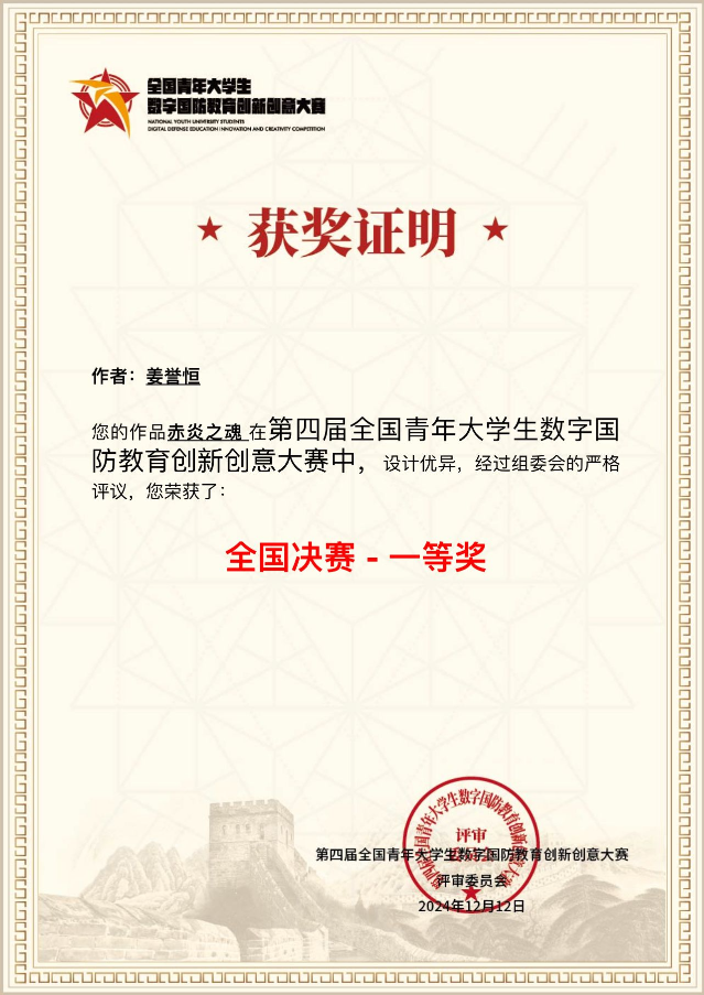近日,第四届全国青年大学生数字国防教育创新创意大赛在北京圆满落幕。我校信息工程系视觉传达设计专业学生姜誉恒等12人荣获国赛等级奖,29人荣获省赛等级奖。本届全国青年大学生数字国防教育创新创意大赛,由国家一级协会中国信息协会主办,中国信息协会经济与国防协调发展专业委员会承办,旨在深化全民数字国防教育,推动全民国防教育的创新发展。此次大赛吸引了众多高校参与,我校作为参赛单位之一,从筹备到组建参赛队伍,...