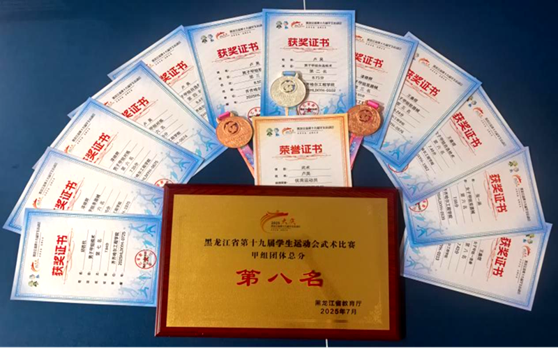 近日,由黑龙江省教育厅主办,黑龙江八一农垦大学和大庆市教育局承办的黑龙江省第十九届学生运动会武术比赛圆满结束。本届赛事创下历史新高,吸引了全省69所高校的80余支代表队参赛,成为我省学生运动会武术比赛史上规模最大的一届赛事。我校武术代表队由7名优秀运动员组成,在教练员韩淑梅的带领下奋勇拼搏,最终斩获多项殊荣,充分展现了我校学子精湛的武术技艺和昂扬的精神风貌。在个人项目方面,信息学院卢昊同学表现尤为...