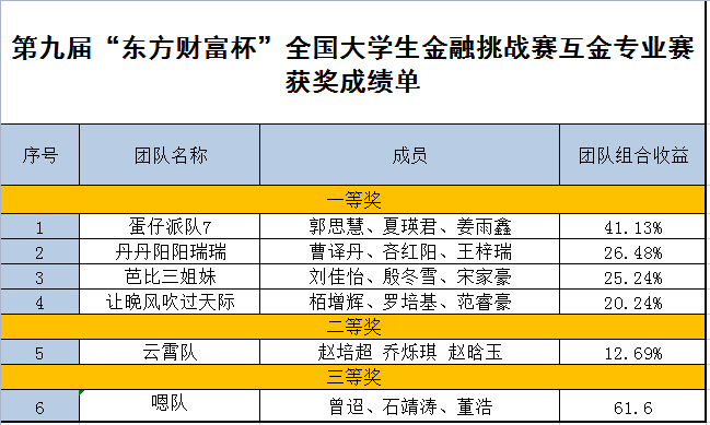 7月23日,第九届“东方财富杯”全国大学生金融挑战赛组委会传来喜讯:我校互联网金融专业一组学生在专业教师的指导下斩获国赛团队二等奖。 本次比赛由共青团中央青年发展部主办,全国学校共青团研究中心、东方财富信...
