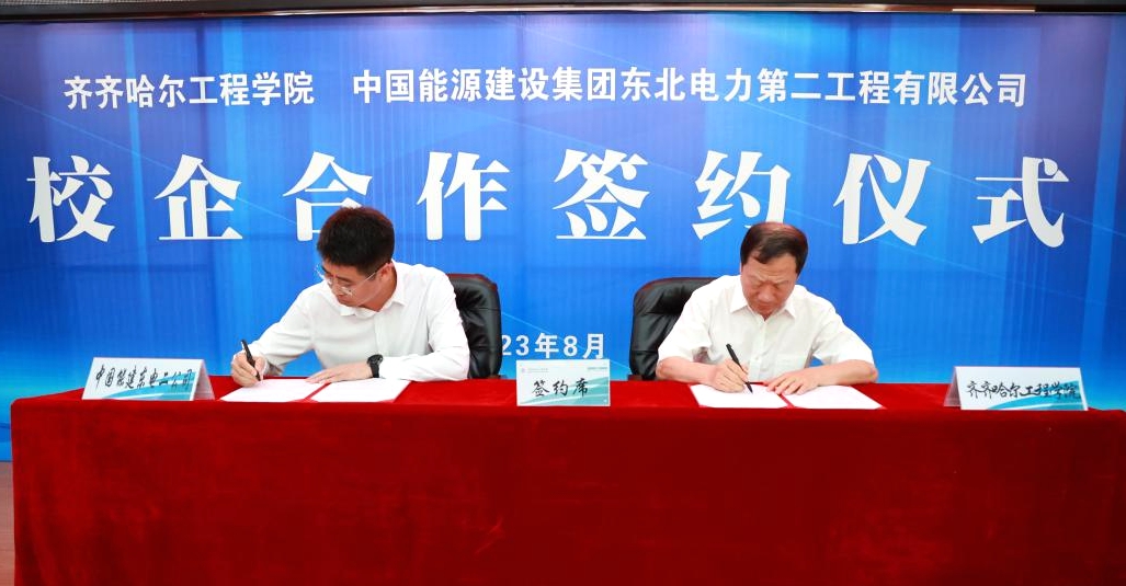 8月12日,学校在图书馆601报告厅与中国能源建设集团东北电力第二工程有限公司举行合作签约仪式。中国能源建设股份有限公司东北总部总经理党喜斌、东北电力第二工程有限公司东北区域总经理李政魁、项目经理董广玉,我校创校校长、理事长曹勇安,院长曹然彬、副院长张静、院长助理陈景鑫出席签约仪式。建筑工程系党总支书记、副主任徐明,基建办主任崔晓东参加。仪式由副院长张静主持。