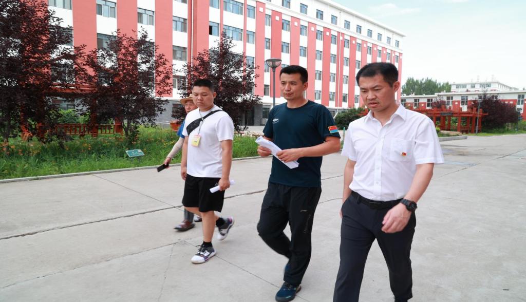 8月1日上午,学校党委书记郭伟东带领保卫处、总务处、基建办等部门相关人员对学校建筑等安全情况再次进行排查。