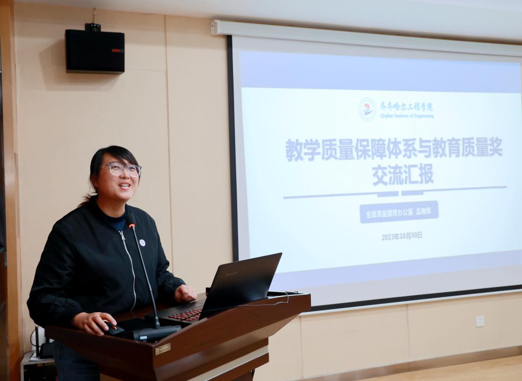 孟艳辉作《教学质量保障体系与教育质量奖交流汇报》,围绕部门简介、教学质量保障体系构建、教育质量奖三方面,对全面质量管理及教育质量奖进行了详细说明。