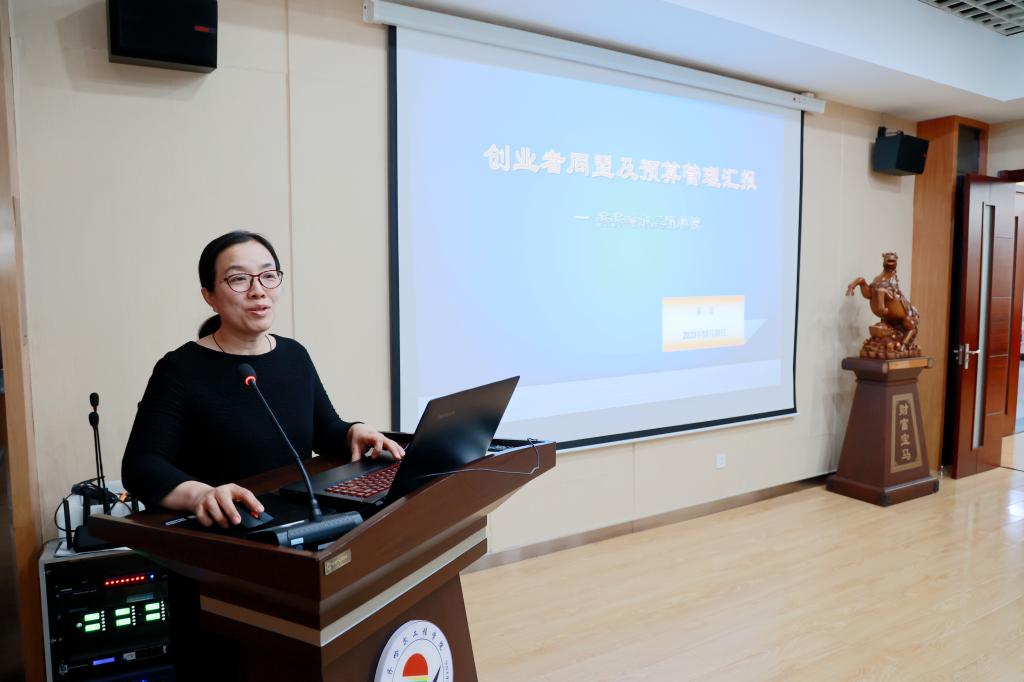 姜岩作了《创业者同盟及预算管理汇报》,对学校的创业者同盟的入盟培训、盟员年终考核的考核内容和要求,以及盟员年终教育质量奖的兑现原则、比例、使用范围等进行了说明,并从预算管理、全面预算闭环管理流程、预算考核等方面进行了汇报。