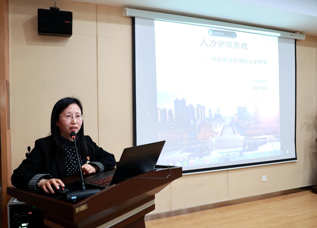张平作《人力资源管理——课程质量管理的人才保障》汇报,围绕师资队伍建设的核心地位、构建师资队伍质量保障体系、人才的“选、育、用、留”三方面进行了分享。