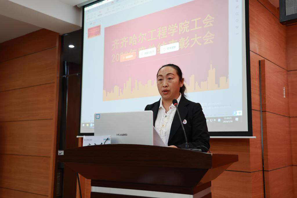 学校工会委员郑洪波宣读《关于表彰j9在线工会2023年度星级基层工会和优秀个人的决定》。