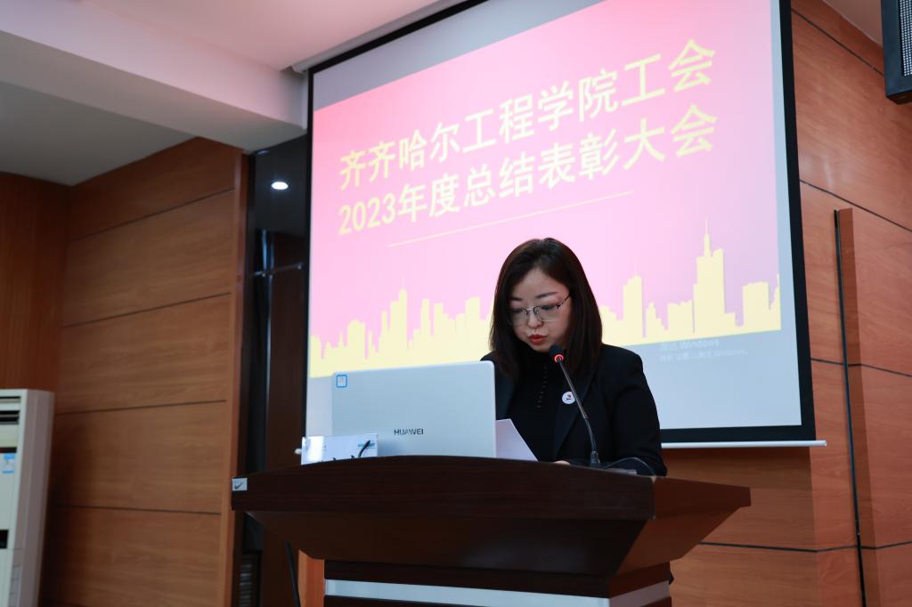 1月10日下午,学校工会2023年度总结表彰大会在学校图书馆601报告厅召开。学校党委书记郭伟东出席大会,学校工会副主席王丽萍、学校工会委员以及各基层工会主席、优秀工会干部和工会积极分子和会员代表等200余位教职工参加会议。会议由学校工会委员张磊主持。