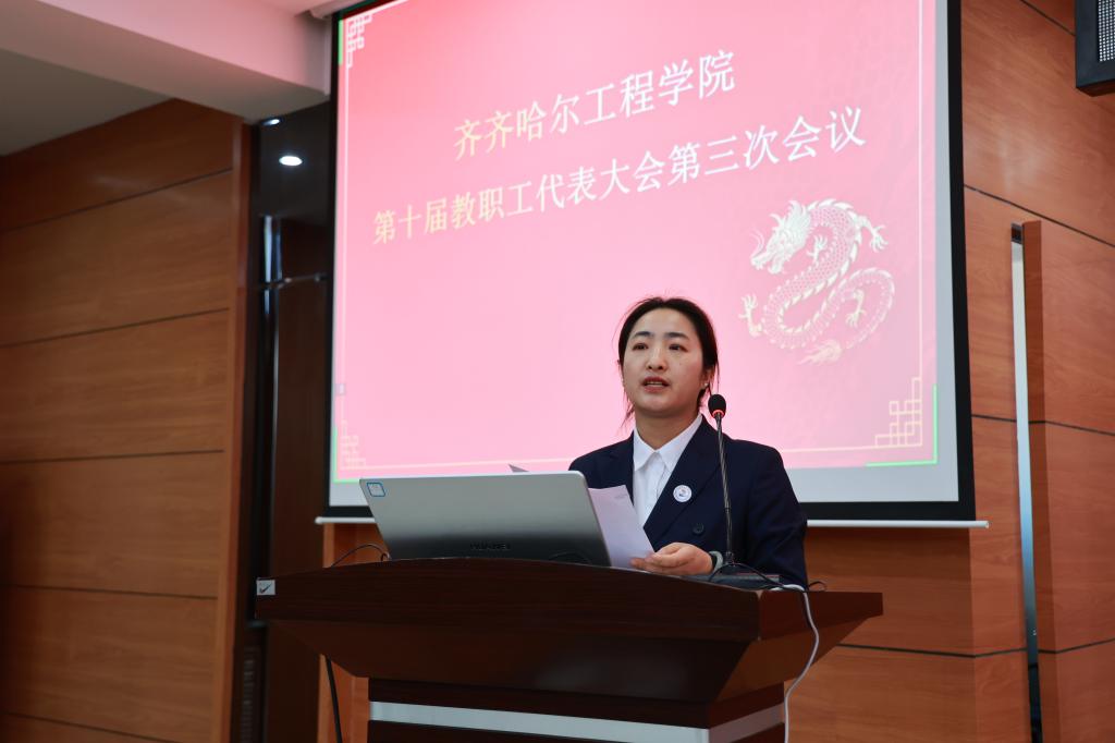 3月1日,j9在线第十届教职工代表大会第三次会议在图书馆601报告厅召开,来自学校9个基层工会的156名教职工代表参加大会,200余位教职工列席会议。学校工会 副主席王丽萍主持大会。