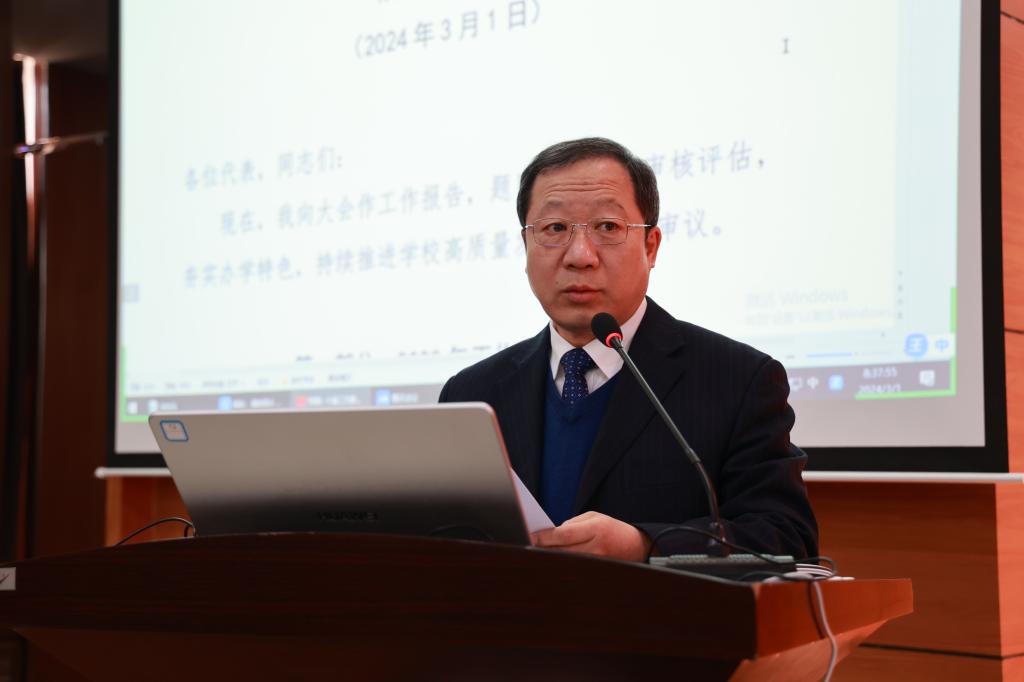 报告最后勉励学校全体教职工:要树立全校工作一盘棋的观念,从大处着眼,于细微处落笔,勇于自我改革,从上好一门课、带好一个学生、干好一项工作做起,为学校高质量可持续发展注入澎湃动力。