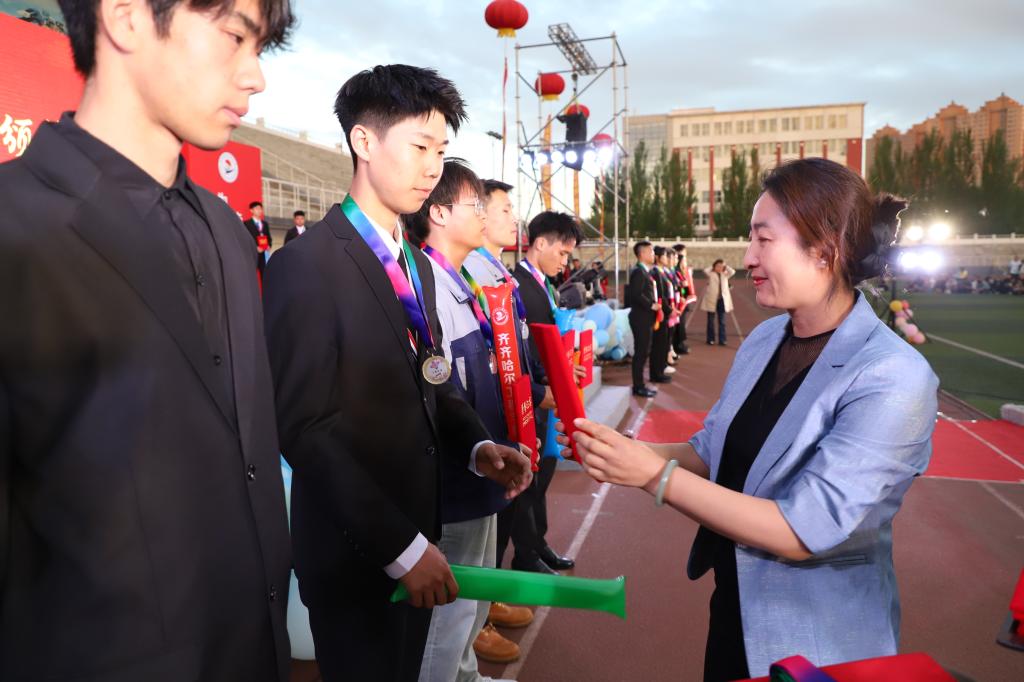 陈景鑫宣读了《关于表彰2024“丁香奖章”获得者的决定》文件,授予机电工程系机械222班高月童等49人为“丁香学子奖章”获得者、三公寓公寓辅导员程丽华老师等17人为“丁香教师奖章”获得者、裴浩然等10人为“丁香少年奖章”获得者。