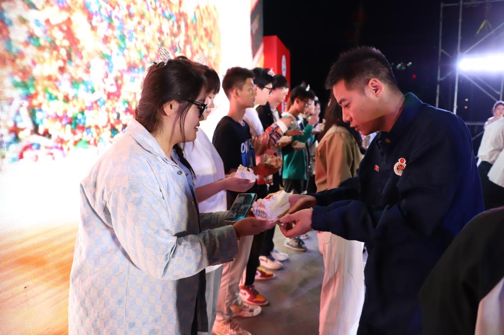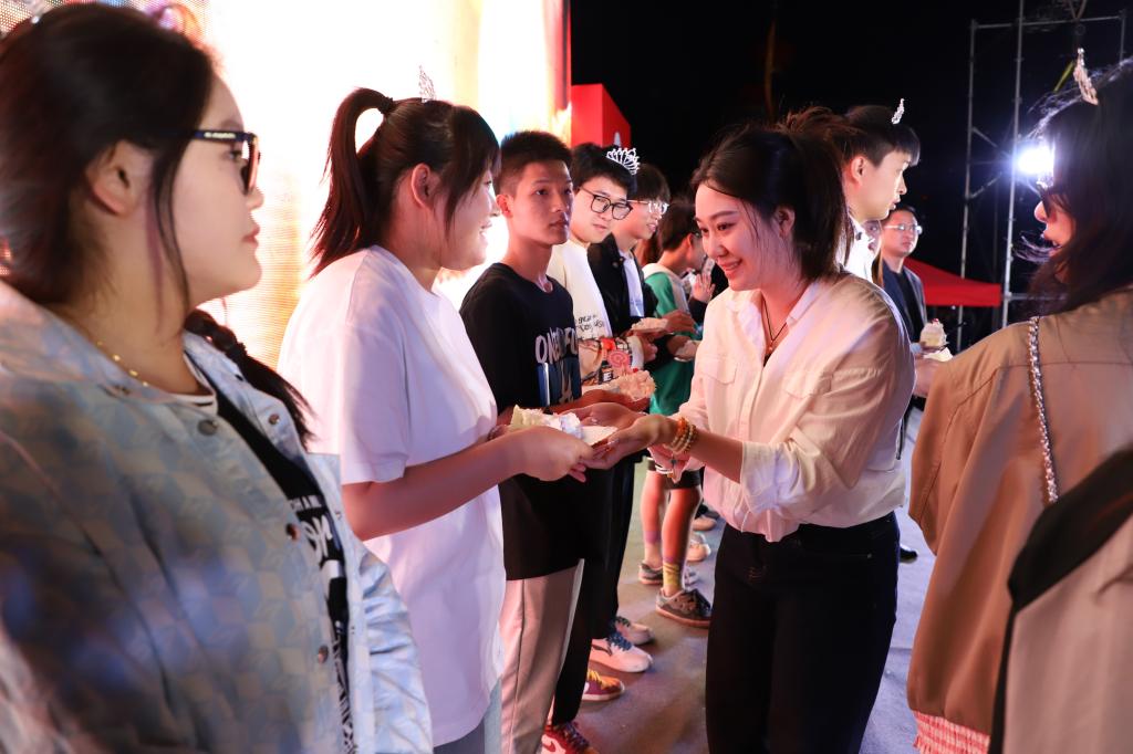 晚会还为在毕业当天生日的5名毕业生和12名在校生送上了特别的惊喜。曹然彬上台为过生日的学生切蛋糕并赠送生日礼物,让在场的学生感受到了家的温暖。