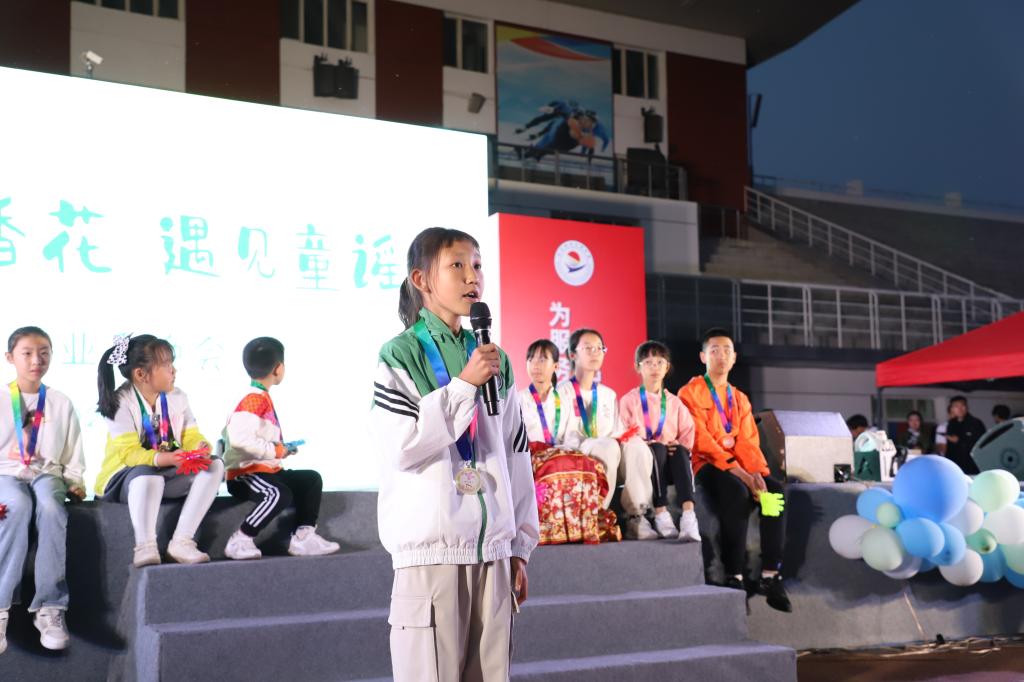 于佳宁小朋友作为丁香少年获奖代表发言。她向即将告别校园的毕业生们送上了真挚的祝福,希望毕业生们勇敢追梦,未来前程似锦,并为毕业生大哥哥大姐姐们献唱歌曲《这世界有那么多人》。