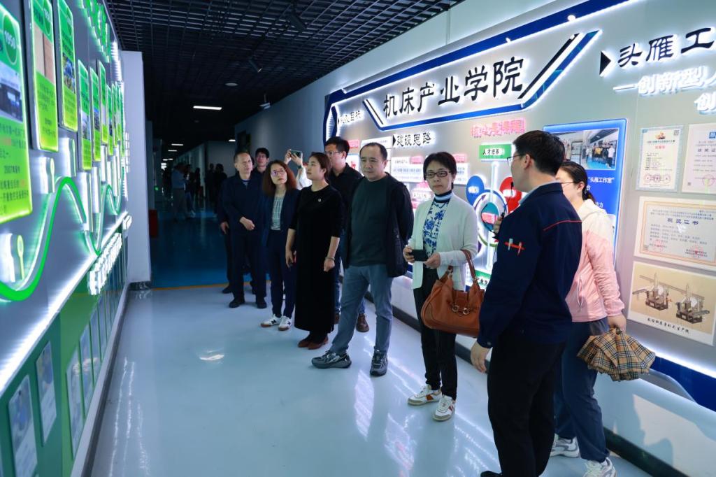 曾勇勤一行在校领导的陪同下,参观了校园北区、齐三机床、大健康教育实训教学中心校内实训基地。