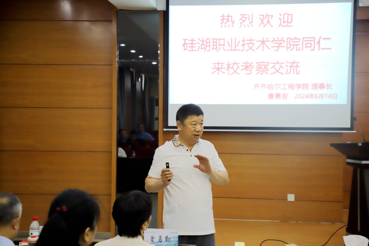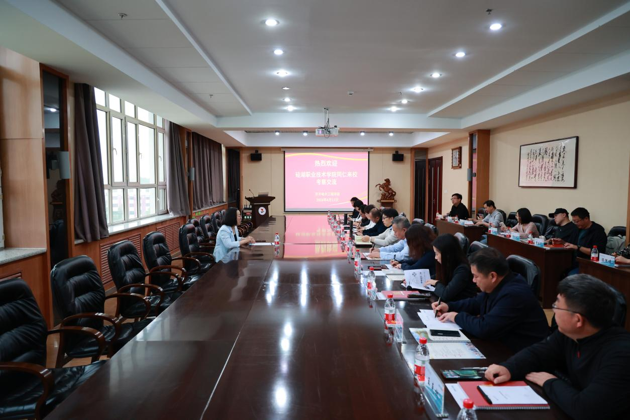6月13日至14日,硅湖职业技术学院执行校长曾勇勤、党委书记丁鹏、党委副书记徐宏俊、副校长王蓓一行30人来校对学校的特色做法、保障运营机制及评价体系等方面进行考察交流。学校领导及相关部门负责人对曾勇勤一行来校表示欢迎并陪同调研。