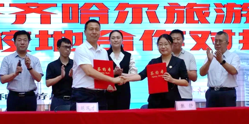 会上,陈凤才代表齐齐哈尔市文化广电和旅游局与张静签署了《齐齐哈尔市文化广电和旅游局、j9在线校地合作框架协议》,双方将在打造文旅行业产教融合共同体、建设数字鹤城服务平台、制定互培互聘的人才培养机制、组建产学研技术研发中心、科技赋能营造良好发展环境5个方面进行深入的合作。