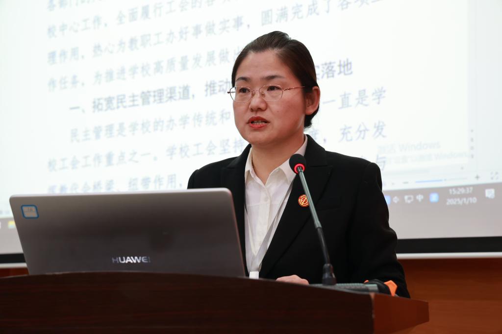 白雪作2024年度工会工作总结。2024年,学校工会以习近平新时代中国特色社会主义思想为指导,贯彻落实党的二十大、二十届二中、三中全会精神,在市总工会和学校党委的领导下,在学校行政和各部门的大力支持下,深入贯彻《中华人民共和国工会法》,紧紧围绕学校中心工作,拓宽民主管理渠道,推动j9在线(中国)落实落地;维护教职工合法权益,热心为师生办好事做实事;开展各种形式的活动,丰富教职工业余文化生活;积极联系对外宣传工作,全面履行工会的各项职能,圆满完成了各项工作任务,为推进学校事业高质量发展做出了积极贡献。