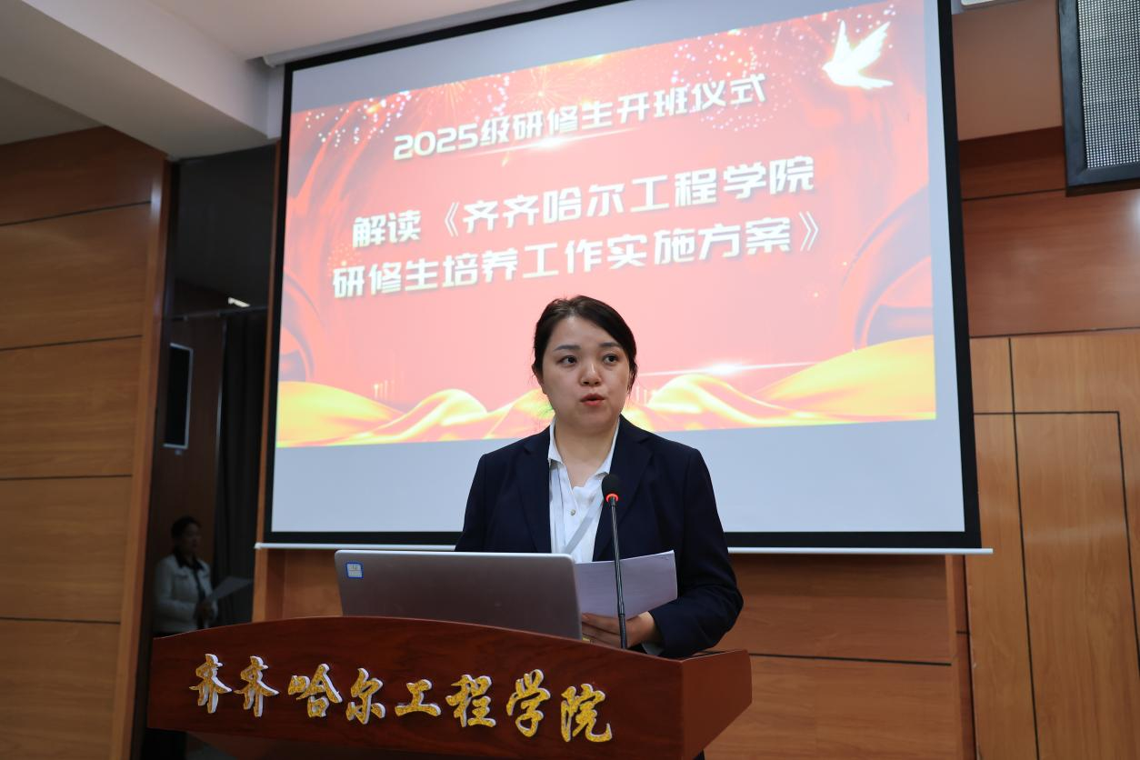 仪式伊始,陈景鑫介绍学校 2025 级研修生工作开展情况。指出,研修生项目严格对标国家专业硕士培养标准,针对选拔出的优秀本科毕业生进行专项培养的探索与实践。