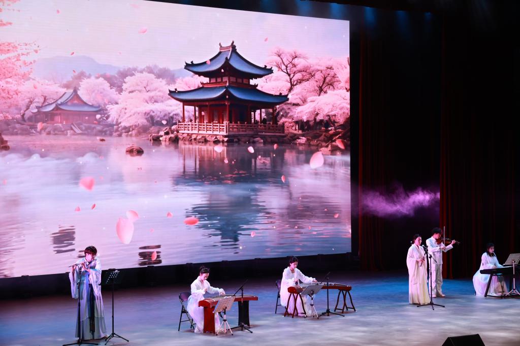 晚会以器乐合奏《红尘客栈》拉开序幕,大学生艺术团通过传统民乐与现代编曲的融合演奏展现出艺术创新。