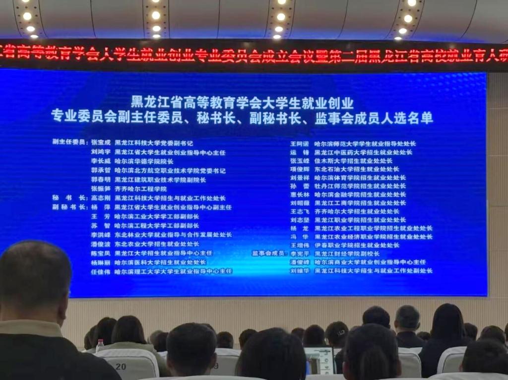 近日,黑龙江省高等教育学会大学生就业创业专业委员会成立会议暨第二届黑龙江省高校就业育人研讨会在黑龙江科技大学举办。会议审议并通过了《黑龙江省高等教育学会大学生就业创业专业委员会规程》,选举产生了第一届专委会主任委员、副主任委员、秘书长、副秘书长和监事会成员。我校监事会主席张振笋被任命为副主任委员。