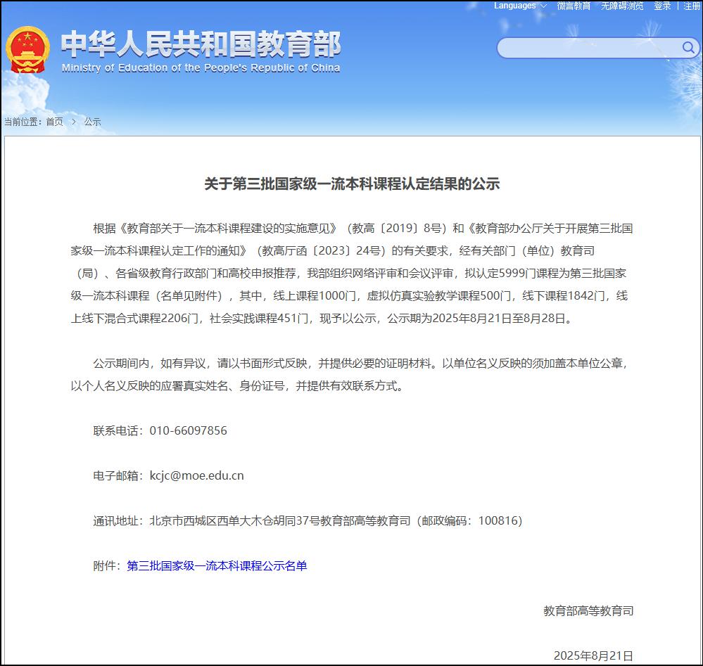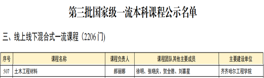8月21日,教育部高等教育司发布《关于第三批国家级一流本科课程认定结果的公示》。由我校教务处副处长郝丽娜负责的《土木工程材料》课程成功入选国家级“线上线下混合式一流课程”,实现了历史性突破。此次入选,标志着学校在课程建设与教育教学改革方面取得重要进展,也为学校的教育教学改革和发展注入强劲动力。