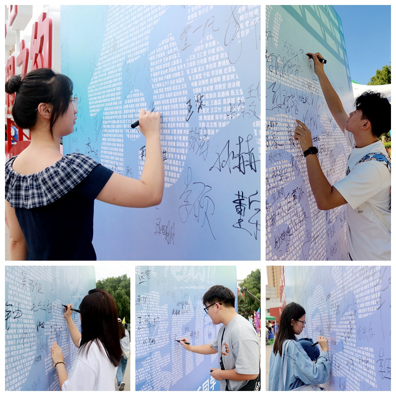 学校精心布置了迎新签到墙与幸运抽盲盒