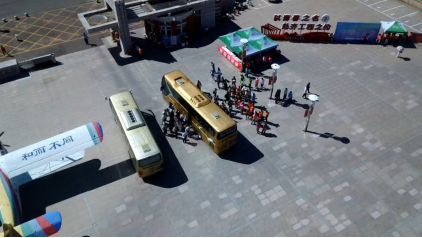 大巴车循环往返于学校和车站、机场