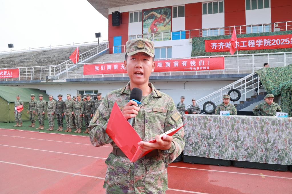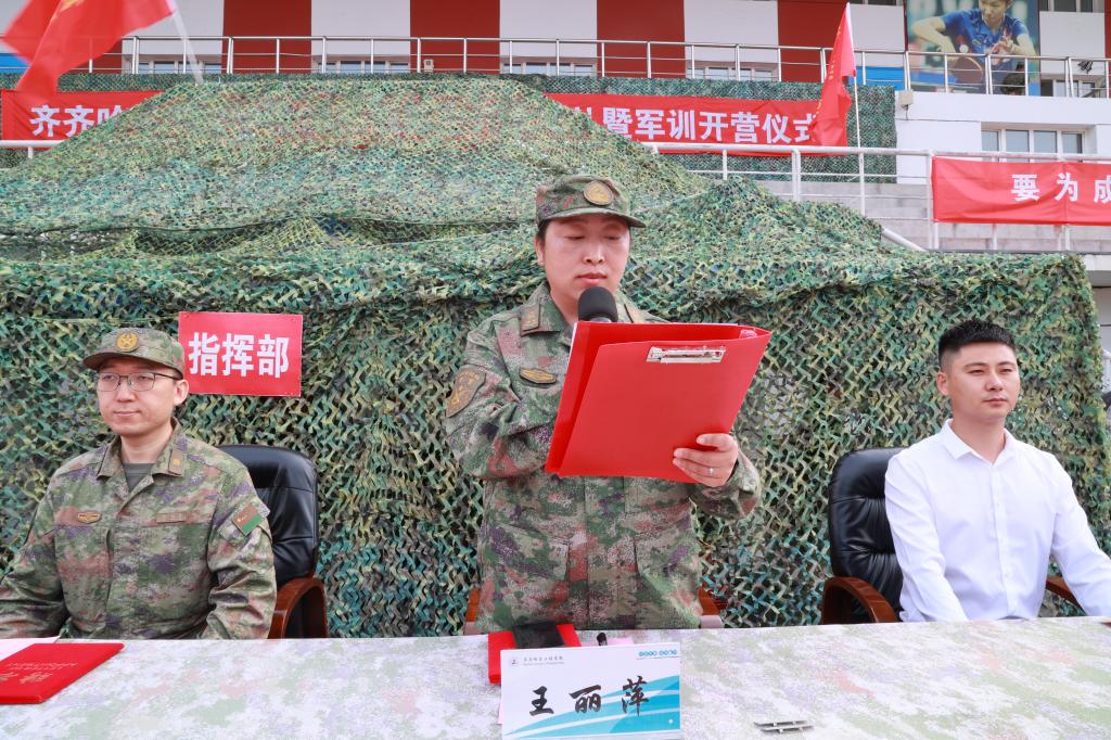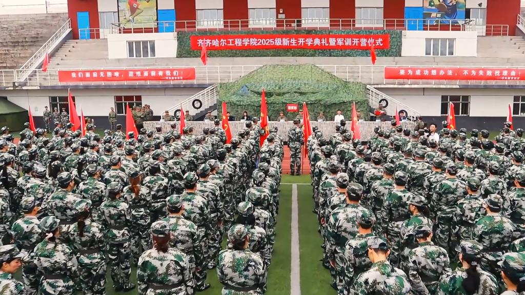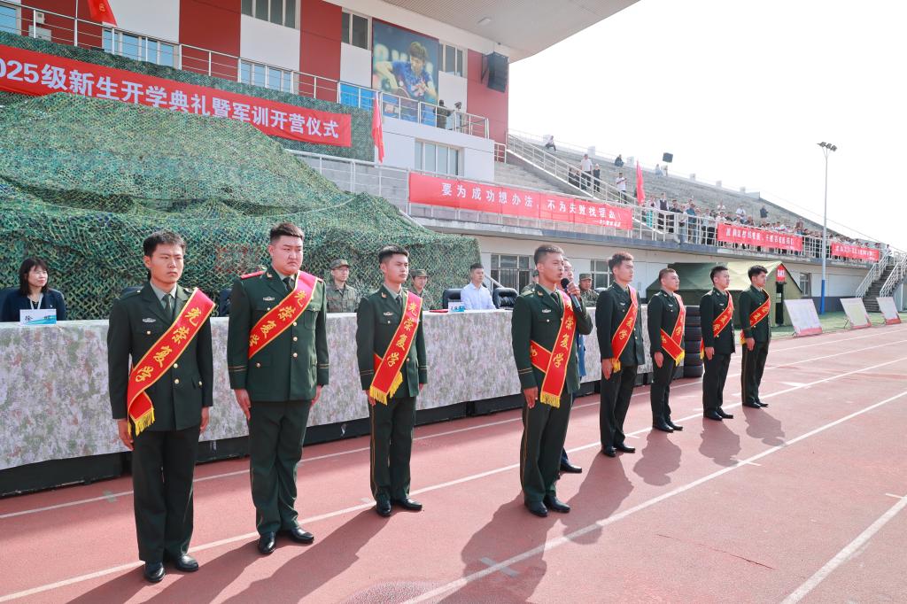 9月1日上午,学校2025级新生开学典礼暨军事技能训练开营仪式在学校体育场举行。学校党委副书记、副校长陈景鑫,龙沙区人民武装部副部长邹向华出席仪式。学生工作处处长王丽萍、副处长兼武装部部长孙晓芳,各学院院长、党委副书记,全体学长教官、参训新生及部分新生家长代表共同参加。仪式由校团委书记高士涵主持。