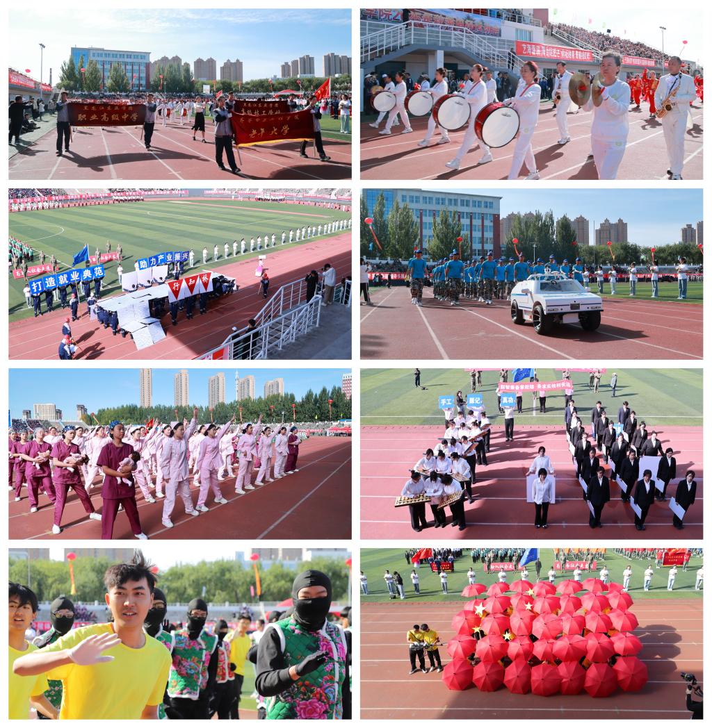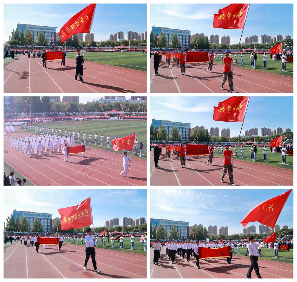 伴随着雄壮激昂的进行曲,国旗队、校旗队、标语牌队、红旗队以及裁判员、运动员和各学院方队共43支队伍,迈着矫健的步伐依次经过主席台。各方队结合专业特色,展示了学校在“四真三化(FT)”课程建设、微专业建设、产业学院建设等方面取得的丰硕成果。队员们步伐整齐、意气风发,展现出学校勇往直前、奋勇争先的精神风貌。