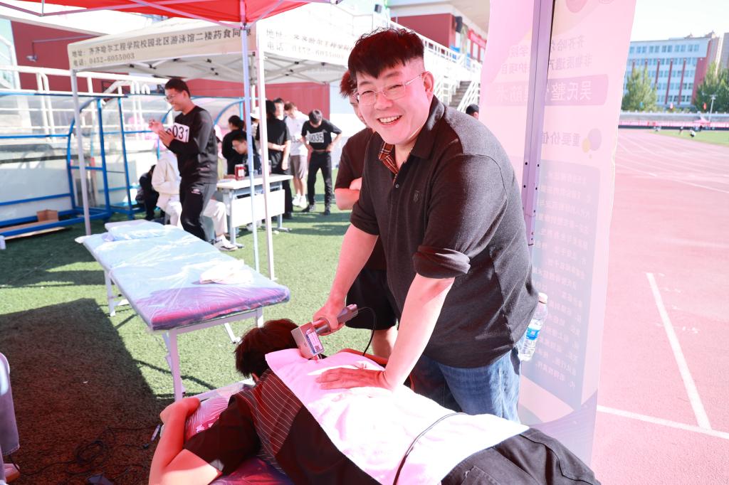 运动会期间,运动康复治疗团队借助DSM肌肉刺激仪、筋膜刀等先进康复设备,为运动员提供专业保障,有效提升运动员肌肉弹性与血液循环,助力运动员在比赛中发挥最佳状态,广受运动员的好评。同时,学生也在实践中深化了理论知识,提升临床思维能力,增强了专业认同与职业使命感。