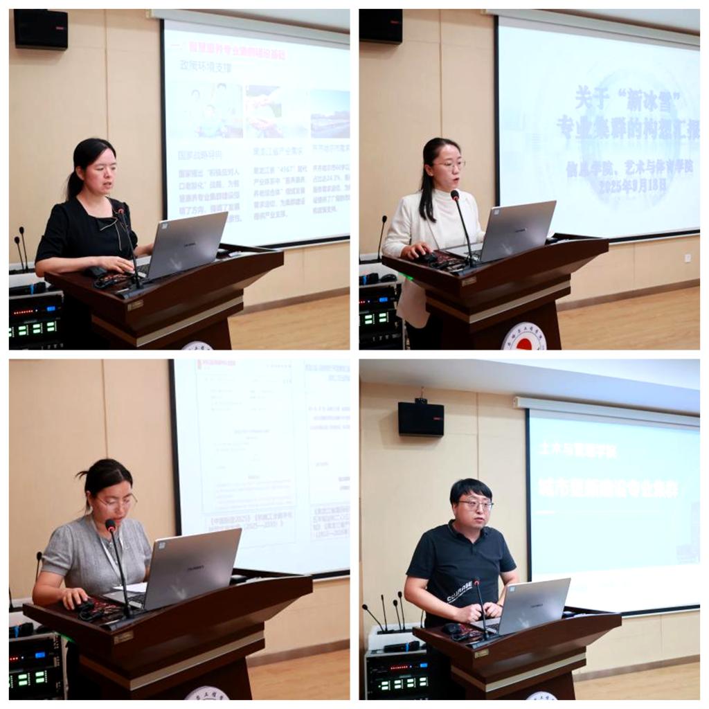 会上,医学院、信息学院、艺术与体育学院、机电学院及土木与管理学院依次汇报了专业集群建设构想。各学院围绕专业集群的建设基础、服务领域、建设规划以及质量保障等多个维度展开了详细阐述。基于自身优势与区域产业发展需求,各学院规划了一系列特色鲜明的专业集群,主要包括:智慧康养专业集群,致力于培养适应老龄化社会需求的复合型康养人才;冰雪文旅专业集群,聚焦冰雪产业数字化与智能化,为区域冰雪经济发展提供技术支撑;智能装备制造专业集群,致力于推动制造业向智能化转型升级。