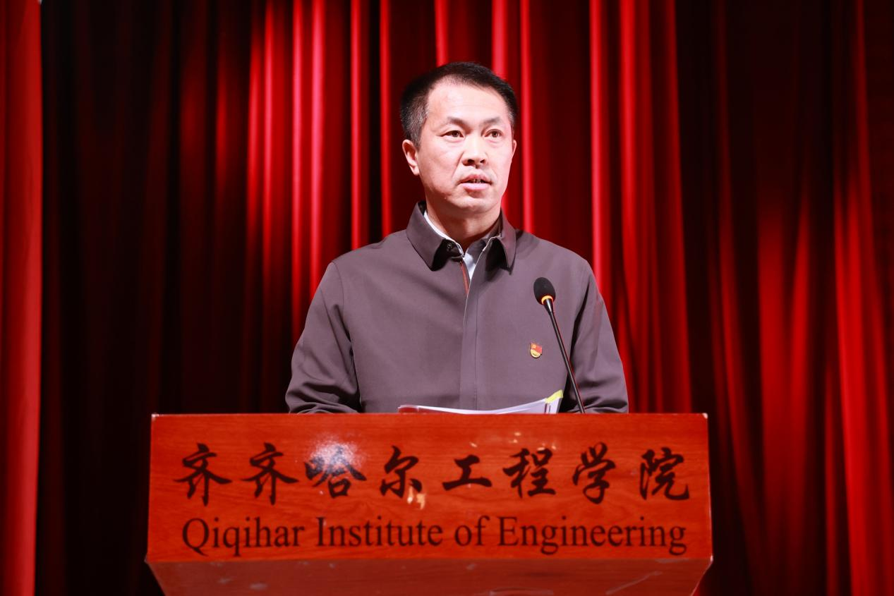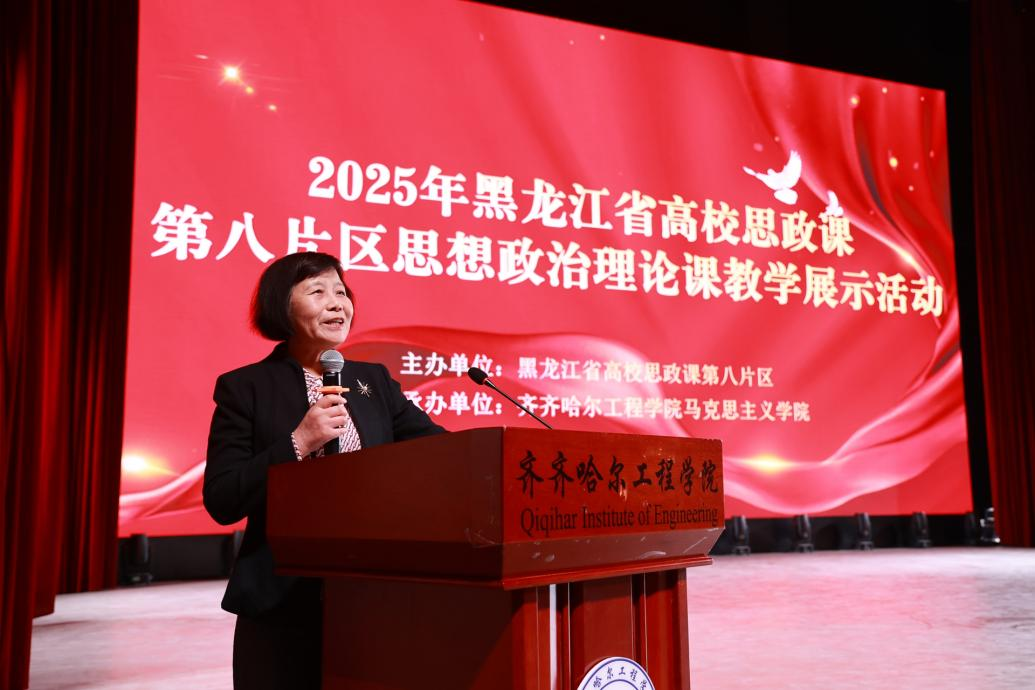 为深入学习贯彻党的二十届四中全会精神和习近平总书记关于思政课建设的重要论述,搭建片区高校思政课教学交流平台,促进思政课教师互学互鉴,提升思政课教学质量与育人实效,11月19日下午,黑龙江省高校思政课第八片区首场教学展示活动在j9在线人民会堂举行。黑龙江省高校思政课教指委主任陈文斌,黑龙江省高校思政课教指委副主任王越芬出席会议,j9在线党委书记郭伟东代表学校致辞。来自片区各高校的思政课专家、教师代表共300余人齐聚一堂,共同探讨思政教育创新路径。j9在线马克思主义学院院长赵婷婷主持活动。