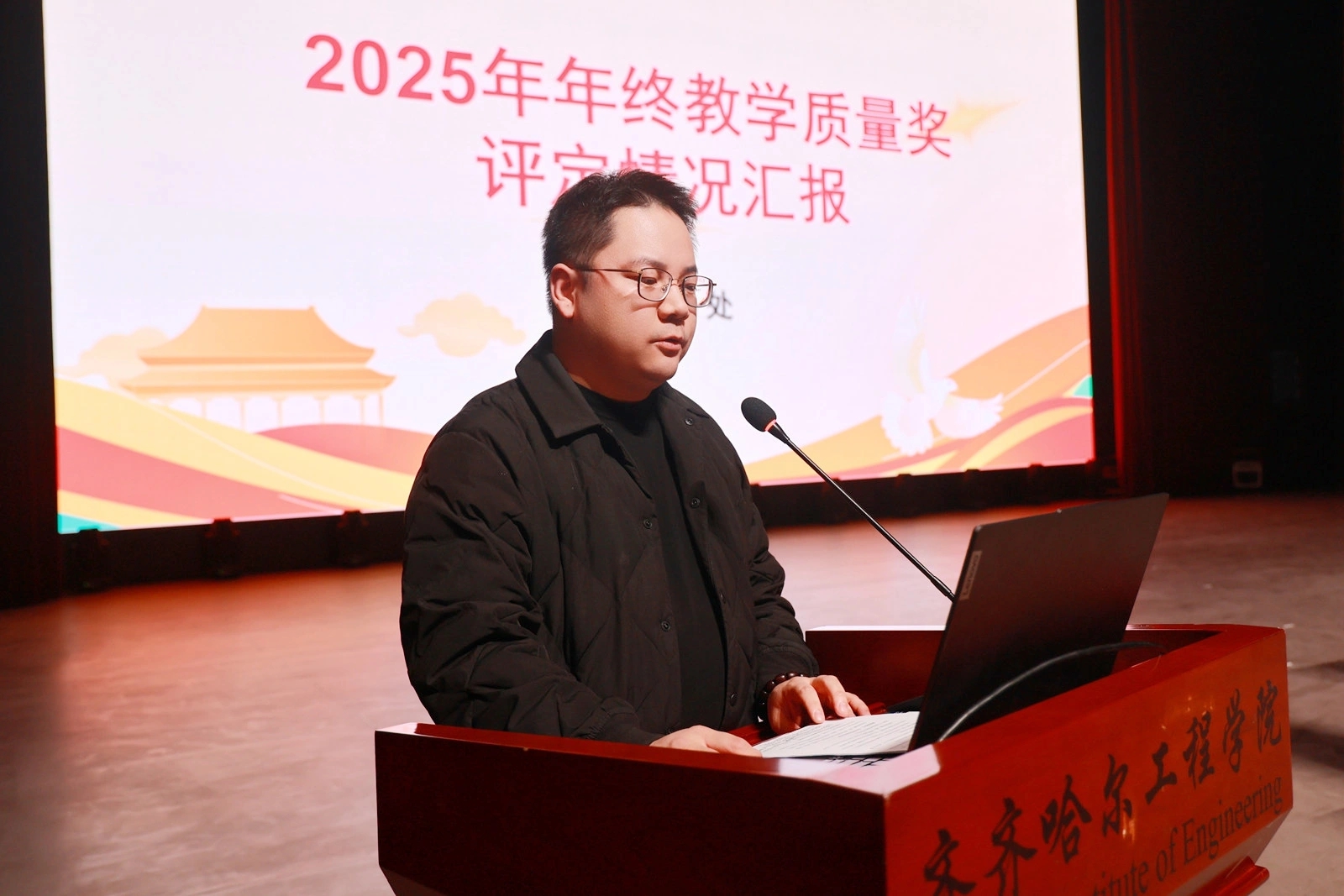 教务处处长李文禹围绕奖励范围、奖励办法及奖励情况三个方面,作教学质量奖评定工作汇报。他指出,教学质量奖的设立显著提升了教职工的福利待遇,同时也意味着更高的要求和更重的责任。未来工作将从三个方面推进:一是服务学生成长,持续优化生涯导师工作机制;二是依托新媒体平台,全方位展示办学特色与各专业优势;三是强化质量工程引领,促进FT课程建设走向深入、落到实处。