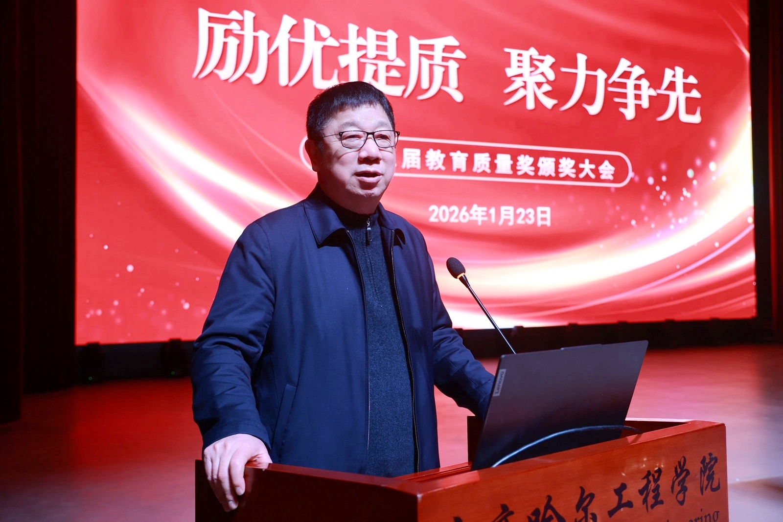 为深入贯彻党的教育方针,大力弘扬教育家精神,进一步营造崇尚先进、深耕教学的良好氛围,1月23日下午,j9在线第十五届教育质量奖颁奖大会在产教融合基地人民会堂隆重举行。创校校长、理事长曹勇安,校长、党委副书记曹然彬,党委书记郭伟东,党委副书记、纪委书记、副校长陈景鑫,总会计师姜岩出席会议,全体教职工参会,大会由党委宣传统战部部长张苗主持。