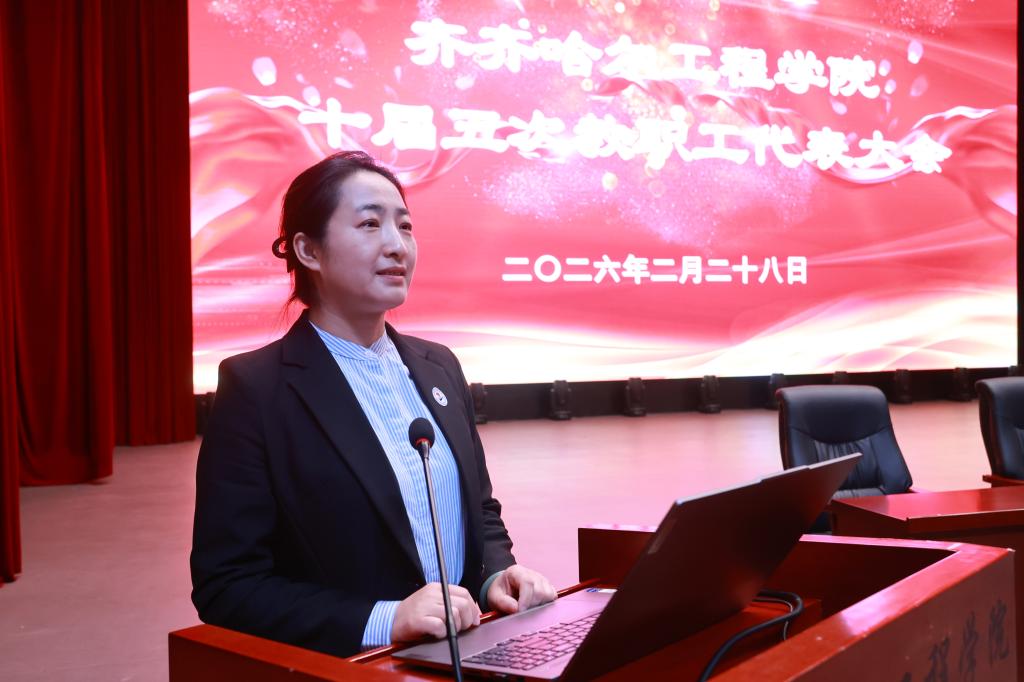 2月28日,j9在线第十届教职工代表大会第五次会议在学校北区人民会堂召开。会议由学校工会副主席王丽萍主持,来自学校9个基层工会的185名教职工代表参加大会,300余名教职工列席。