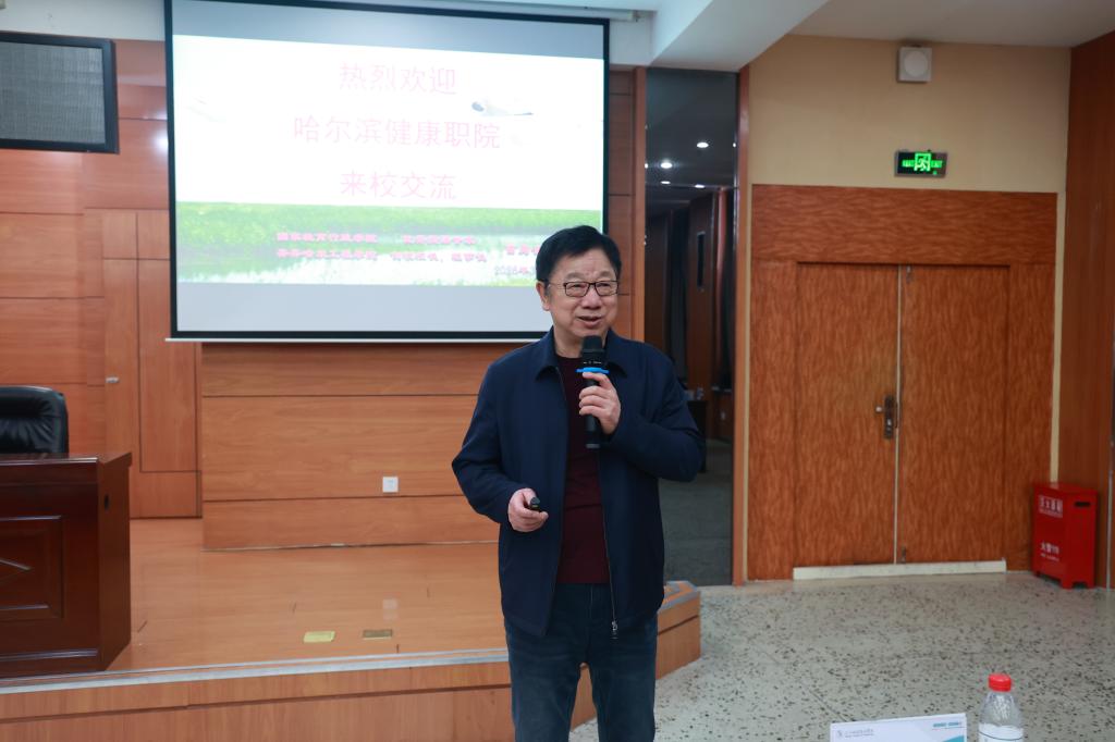 在介绍学校产教融合时,曹勇安重点阐释了从1.0版的“产教融合中心”,到2.0版的“产教融合基地”,再到正在构建的3.0版“产教融合园区”迭代升级的过程,系统展现了学校的不断探索与新形态的形成。交流最后,他寄语哈尔滨健康职业学院,希望兄弟院校能抓住产业发展机遇,乘势而上,在实现高质量发展的同时,办出特色、办出水平。