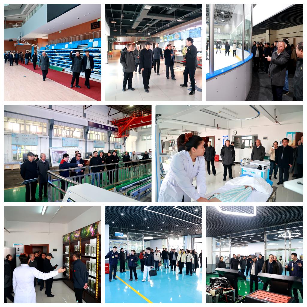 考察团在学校领导的陪同下参观了学校产教融合基地和校内实践教学场所,实地走访了人民会堂、游泳馆、儿童健康管理中心、药食同源馆、健身馆、体育馆、冰上运动馆及大健康教育省级实验教学示范中心、新能源汽车实训中心、齐三机床等地。考察团成员对学校在实践教学、微专业建设等方面取得的成果给予高度评价,认为教育理念超前,在产教融合、创新创业教育、服务社会等方面具有示范意义。