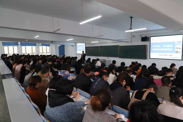 10月30日下午,学院理事长曹勇安为全体教职工讲授《不忘初心、牢记使命,乘评估东风持续改进》专题党课。