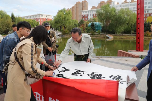 9月24日下午,由校党委宣传部与团委联合举办,齐工程书法爱好者协会承办的学校建校三十周年系列活动之“秋到易湖畔·墨香飘校园”——鹤城书法家齐工程笔会在我校举行。