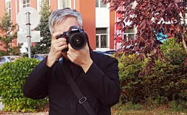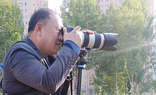 许老师对前来的摄影老师给予点赞,宋燕军在拍摄的时候始终背着一个重20多斤的双肩包儿,却乐此不疲奔走拍摄;黄洋为了拍好鸽子在地面吃食儿的镜头,自己躲在易湖边儿台阶下,把单反相机放在地上拍,既认真又有办法!