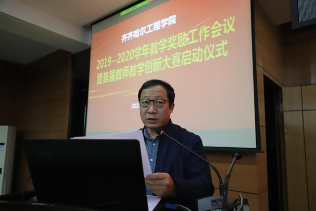 11月24日下午,学校采用线上+线下同步方式召开2019-2020学年教学奖励工作会议暨首届教师教学创新大赛启动仪式。校领导与全体干部、教学管理人员、教师代表在图书馆601报告厅参加会议,其他人员线上同步收看会议直播。