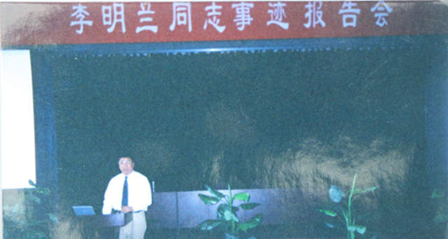 笔者在学校资料室的相册里,看到几张关于“李明兰同志事迹报告会”的照片,很好奇:李明兰是谁?她有什么事迹?学校为什么如此隆重地举办报告会?