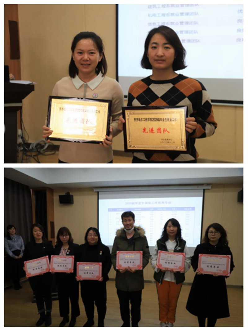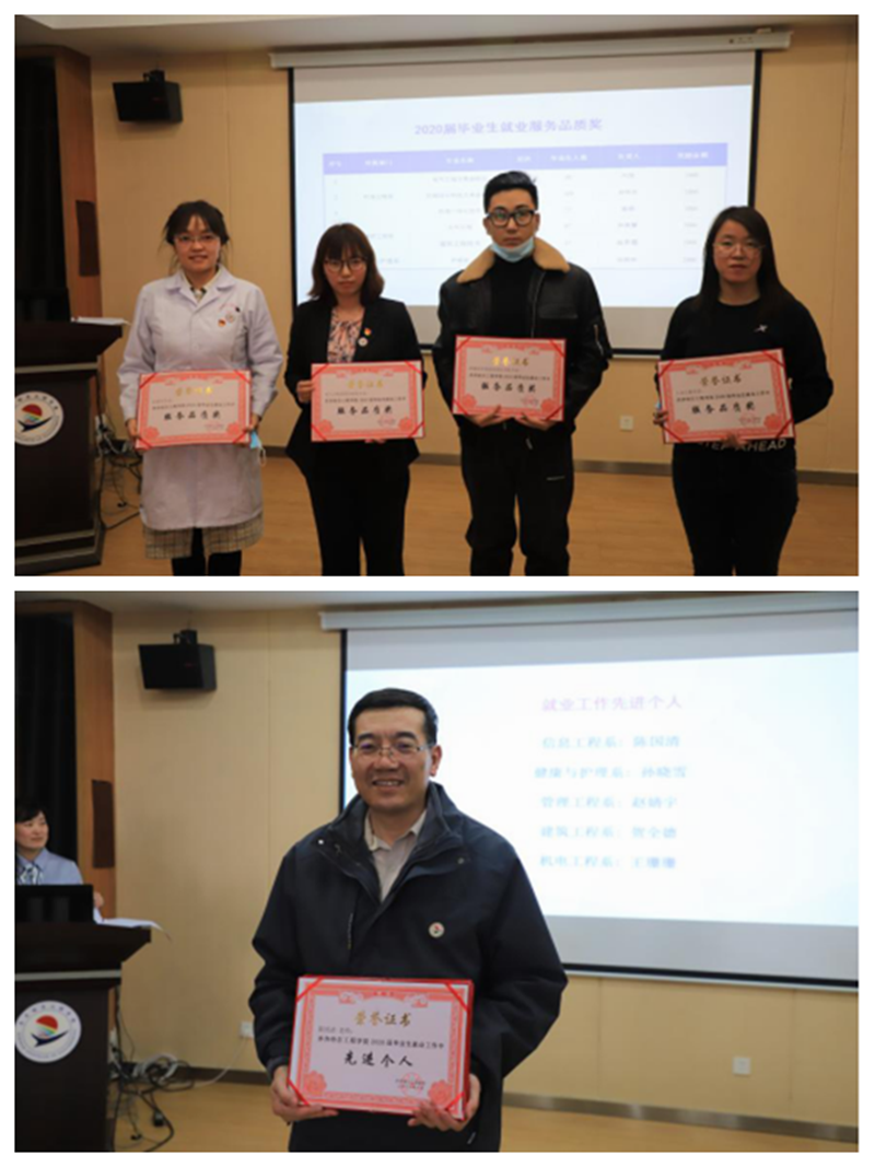 2020届毕业生“就业工作先进团队”“就业工作优秀专业”“服务品质奖”“就业工作先进个人”进行表彰,张振笋副院长现场颁发奖励铜牌及奖状以资鼓励。
