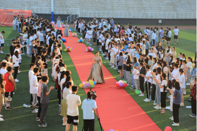 在同学们的陪伴下,丁香奖章获得者身着节日盛装,笑容灿烂,自信坚定地走过红地毯,不断地向两侧的老师、同学们挥手致意,现场掌声与欢呼声此起彼伏,笑容与彩霞一色,好读书的学子接受师生最隆重热烈的喝彩,享受成长的荣光与幸福。