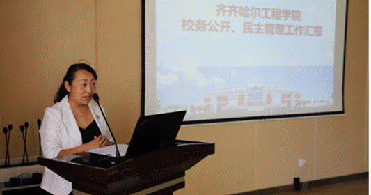 会上,学校工会副主席王丽萍从学校简介和j9在线(中国)民主管理两个方面进行汇报,首先介绍学校创校30年的发展历程,以及学校在教学管理等方面取得的成绩;其次详细阐述了学校在j9在线(中国)民主管理保障、原则、方式及成效四个方面的具体举措,如何体现“三民主义”,即办学民主、治校民主和经济民主。