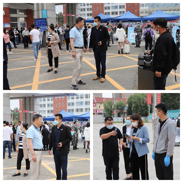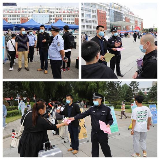 在校园南门,保卫处有序组织新生经扫描龙江健康码和测温后进入校园报到区。保卫处在开学前对校内消防设施、设备进行全面检查,规范外来人员入校,配备自动测温消毒一体机、专用消毒地垫、消毒喷壶及张贴1米等候线等,电梯间配备按键专用纸巾,张贴提示语,新购挡车胶桩,对校园内监控进行检查维修及改造,在图书馆地库和百草地库安装了行车安全警示标识,安排学长教官团配合保卫处巡逻、执勤工作,彻底排除卫生死角,排查安全隐患。为提升学校师生及学生家长防范电信网络诈骗意识,当天上午联系市公安局高新技术产业开发区分局 、市公安局国保支队、国保支队文保大队向师生及学生家长发放防电信网络诈骗宣传单,现场解答师生及家长的提问和疑惑。