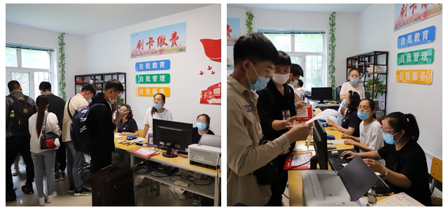 财务处为确保新生顺利缴费,提前召开收费布置会议、规划新生收费路线、收费人员安排、测试收费系统运行情况,针对可能出现的突发情况进行了提前演练。收费现场井然有序,现金、刷卡、微信缴费顺畅。