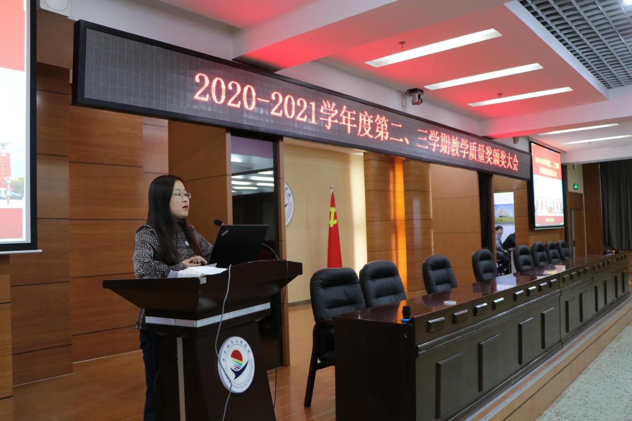 大会由教务处处长张静主持。张静处长对本次教学质量奖认定情况进行了汇报,本次教学质量奖获奖教职工共198名,资金总额100.5万元,其中获奖金额超过1万元共有30名教职工。