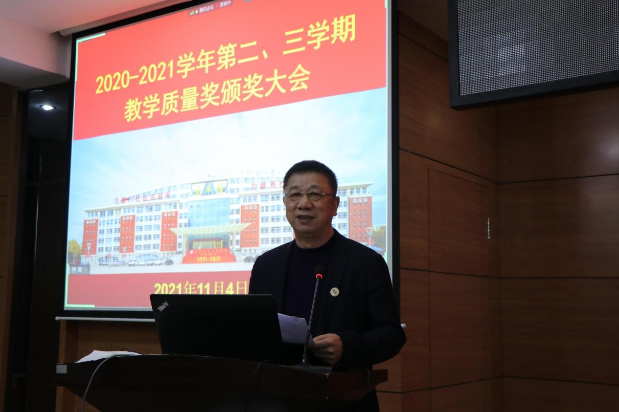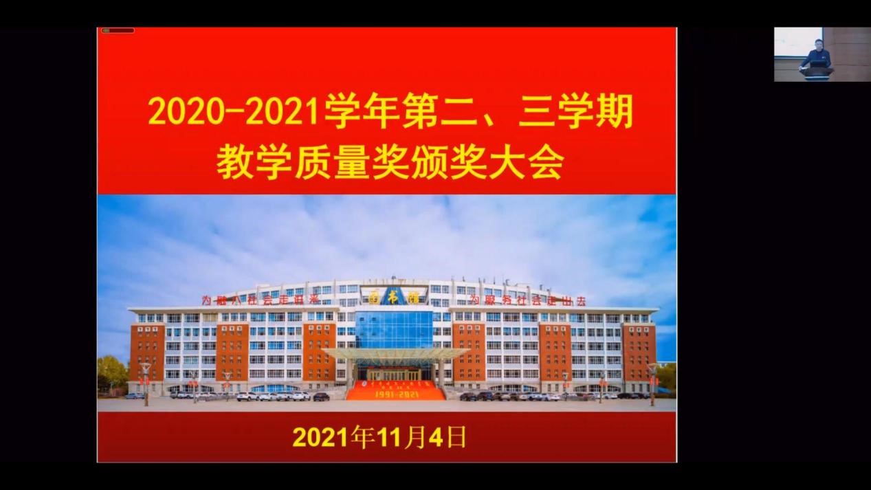 为进一步深化应用型课程改革,提高教学质量,树立典型、激励先进、总结经验、查摆不足,明确下一步努力方向,11月4日下午,在图书馆601报告厅,学校召开2020-2021学年第二、三学期教学质量奖颁奖大会,校领导曹勇安、曹然彬、蒋春艳、姜岩、张振笋,以及系(部、中心)获奖教师代表,遵照防疫要求戴口罩间隔就坐参会,其他教职工线上收听、收看。