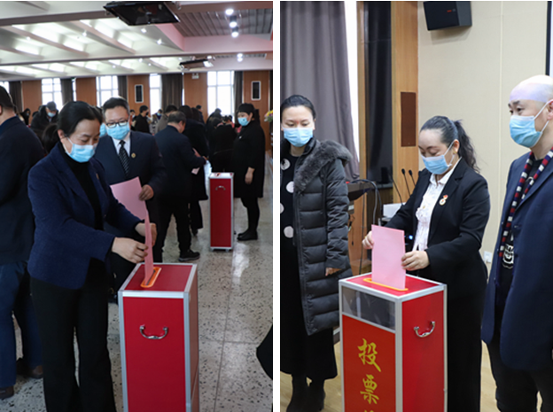 副院长白雪公布学校工会十届委员会候选人名单,宣读候选人简历。大会严格按照选举程序对学校工会十届委员会委员进行选举。与会代表选出了王丽萍、杨忠林、张磊、陈茂松、郑洪波、姜岩、康静七名同志为新一届工会委员会委员。