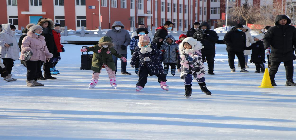 本次活动共设置了“冰上兔子舞”“拉冰车比赛”“速滑比赛”“冰上保龄球”“冰上拔河”五个形式多样,极具趣味性的项目。