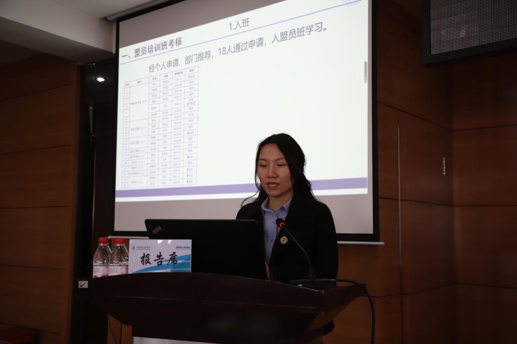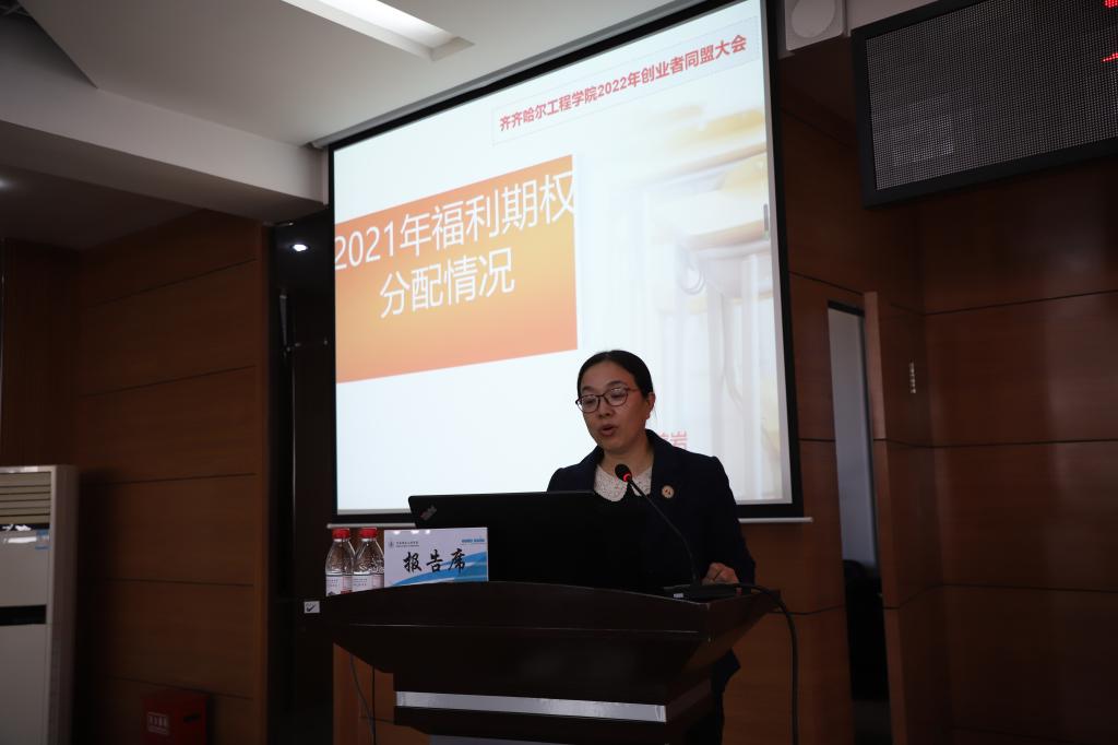 会上,学校工会委员张磊通报了学校2021年度入盟培训班成员及全体在岗盟员考核情况,学校总会计师、工会主席姜岩向大会作《j9在线2021年创业者同盟盟员福利期权分配情况报告》。